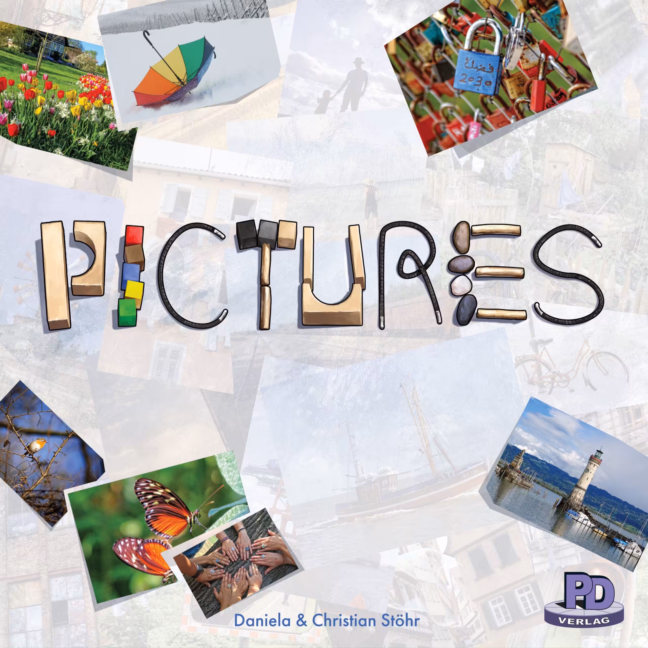 Bauklötze, Schnürsenkel, Symbol-Karten und mehr. Die insgesamt fünf in „Pictures“ enthaltenen Material-Sets könnten auf den ersten Blick kaum unterschiedlicher sein. Trotzdem dienen sie alle demselben Zweck: Mit ihnen sollen die Spieler Foto-Motive so darstellen, dass ihre Mitspieler diese in der großen Gesamtauslage wiederfinden können. Je nach Aufgabe und Material ist das gar nicht mal so einfach, sondern erfordert kreative Ideen und Abstraktionsvermögen. Außerdem muss der Überblick über die anderen Motive der Auslage gewahrt werden, damit man nicht versehentlich doppeldeutig werkelt. Wenn alle Spieler mit ihren Kreationen zufrieden sind, folgt das gegenseitige Erraten mit Punktevergabe. Anschließend wird durchgetauscht, sodass jeder Spieler jedes Material-Set einmal ausprobieren kann.